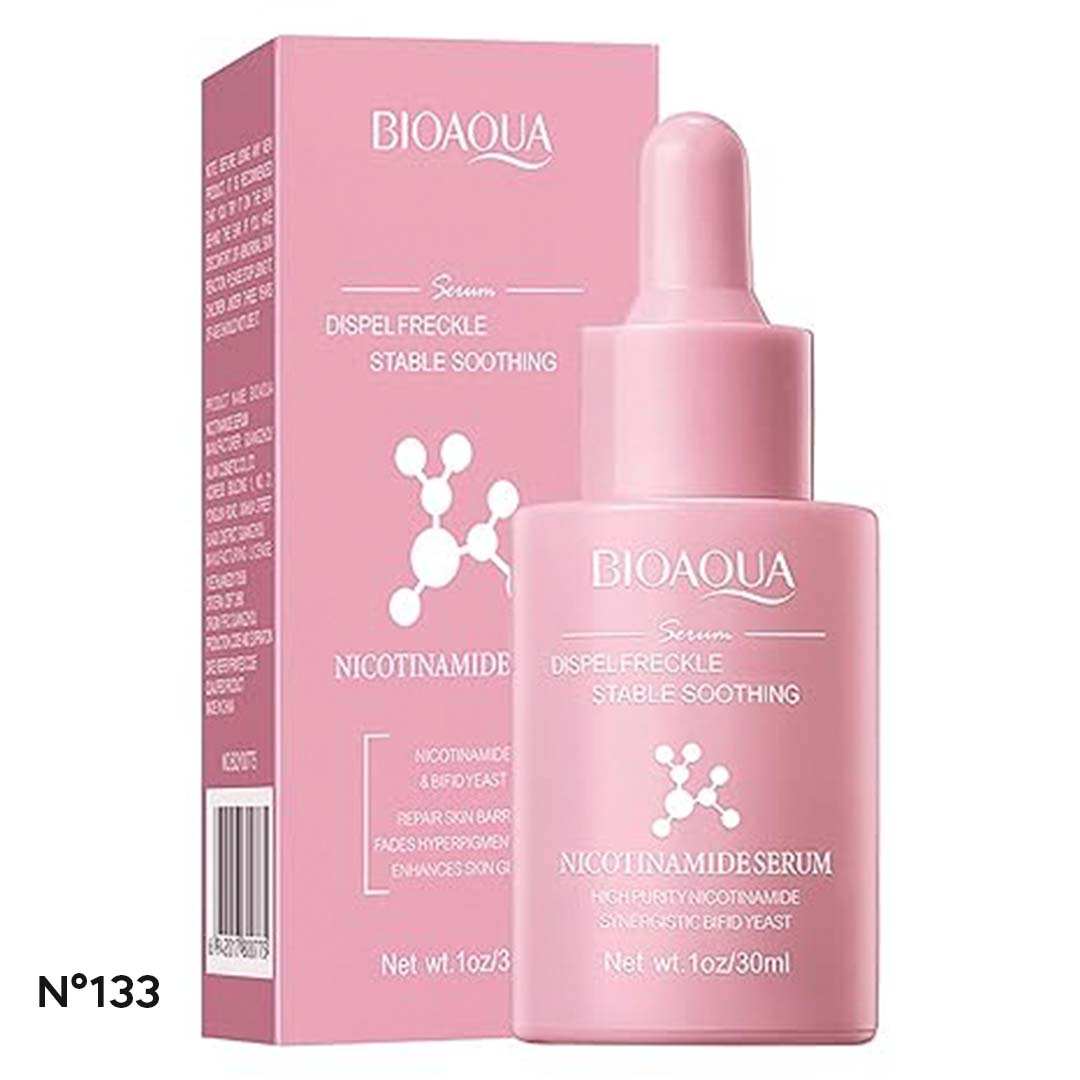 El Serum de Nicotinamida Bioaqua es un suero reparador y calmante diseñado específicamente para desvanecer manchas, pecas e hiperpigmentación, unificando el tono de la piel gracias a su fórmula concentrada con nicotinamida y levadura bífida. Este tratamiento fortalece la barrera cutánea y aporta luminosidad inmediata; para usarlo, aplica suavemente unas gotas sobre el rostro limpio y seco hasta su total absorción, siendo el paso ideal antes de la hidratación para lucir un cutis radiante y libre de imperfecciones.